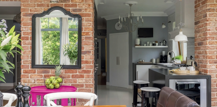 Do materiałów utożsamianych w przeszłości z elewacjami domów, a które stały się inspiracją dla aranżacji współczesnych wnętrz należy cegła. Charakterystyczny format zyskał status klasycznego i wszedł na stałe do kanonu dekoracyjnych motywów. Jednak dzisiaj, by wzór cegły zagościł na ścianach wnętrz, coraz rzadziej sięga się po ten budulec. Wpływ mają na to zarówno koszty – szczególnie wysokie są ceny wyrobów licowych i klinkierowych – oraz wymagania konstrukcyjne. Musielibyśmy podjąć decyzję o budowie ściany trójwarstwowej, by cieszyć się cegłą w kuchni, salonie czy sypialni. Zamiast niej znacznie częściej stosujemy płytki klinkierowe, a także betonowe oraz gipsowe. Osoby, które lubią częstsze zmiany mogą też zdecydować się na ułożenie tapet z tym deseniem.
